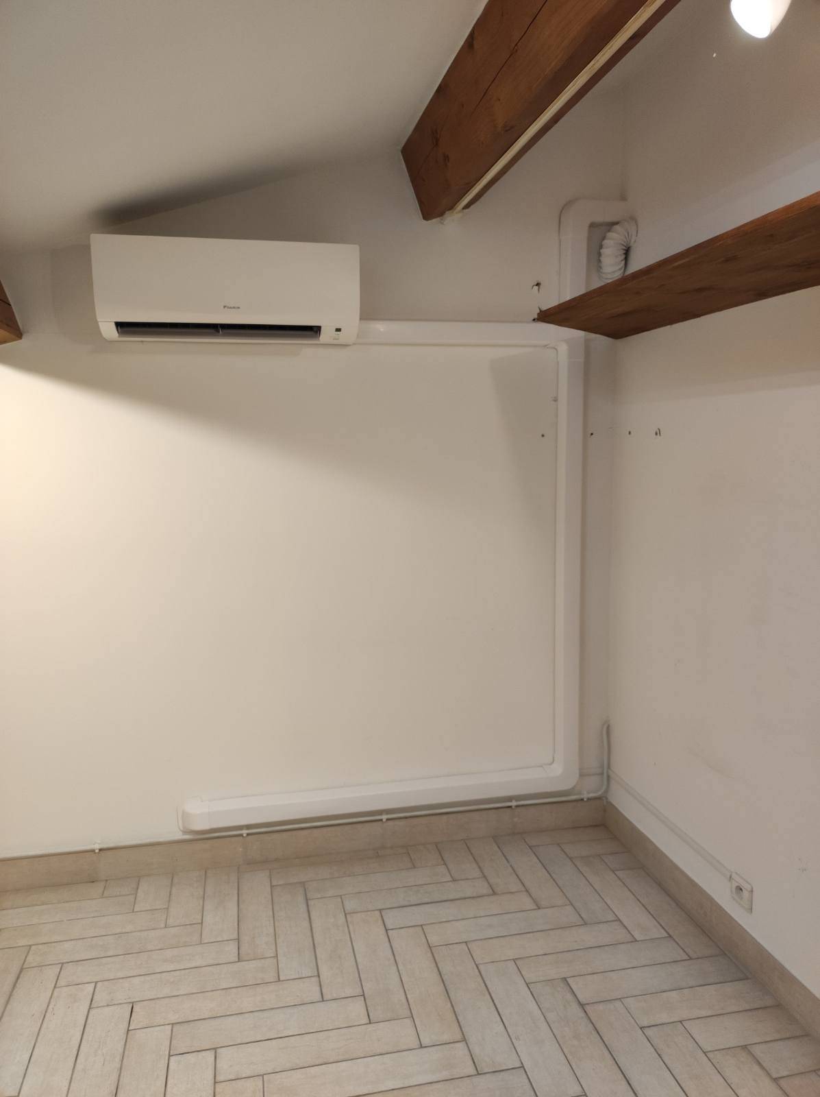 Les liaisons frigorifiques, électriques et condensats passe derrière le dressing, puis traverse le toilette afin de ne pas avoir le minimum de goulotte en façade.