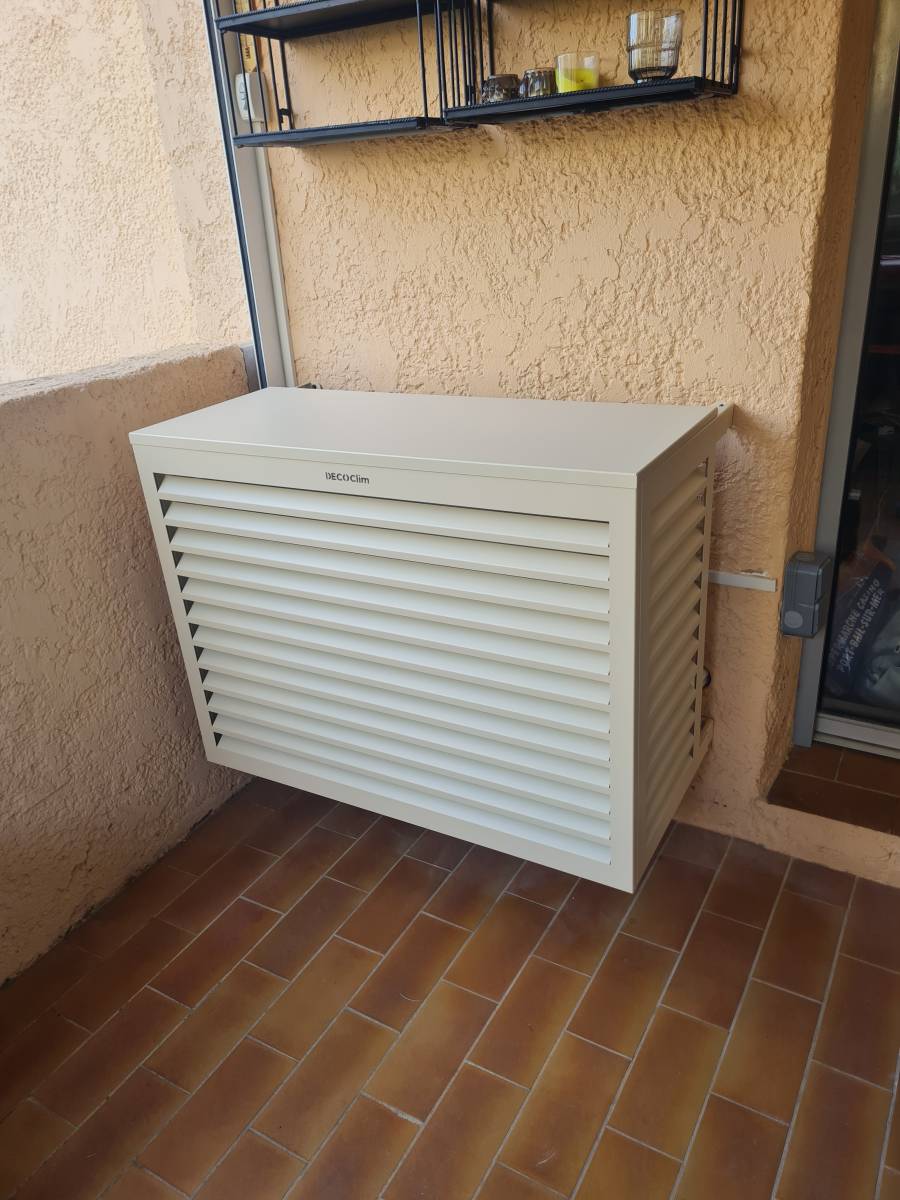 Nous avons installé également un cache groupe de climatisation en aluminium de marque Décoclim pour parfaire cette installation.