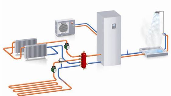 Le système est composé d'un groupe extérieur pour la production de chaud et de froid, d'un module intérieur qui assure la gestion, la régulation et la programmation en fonction de vos besoins, et d'un réseau qui alimente un circuit en boucles de tubes en polyéthylène (PER), ou de tube multicouches, intégrés dans le sol de votre maison.