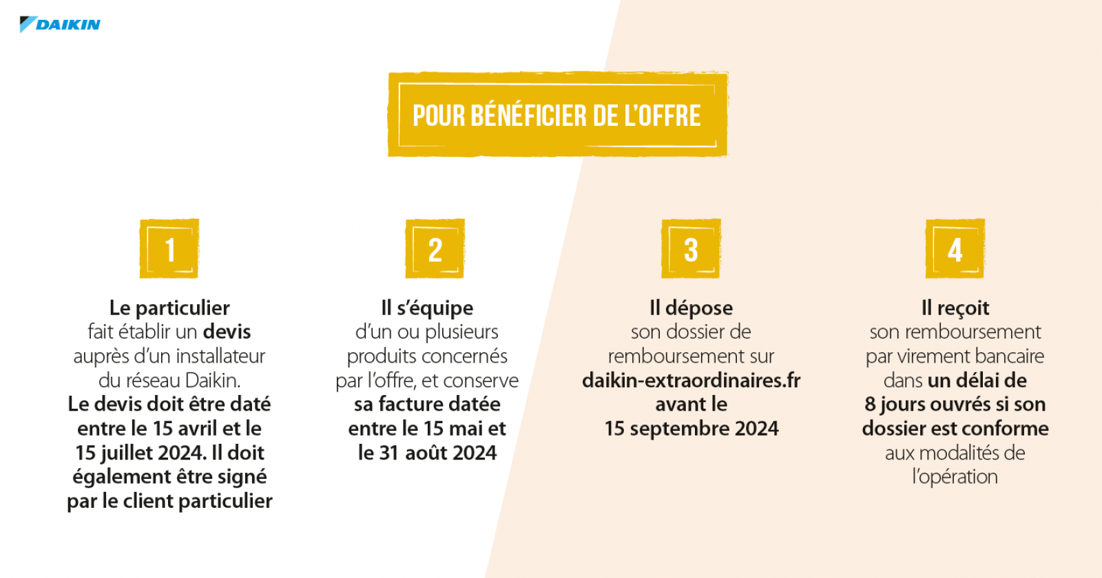 Daikin entre le 15 Avril et le 15 Juillet 2024.