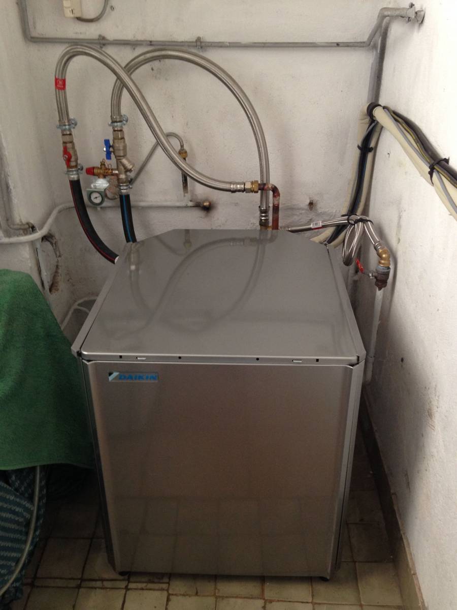 Ces clients souhaitaient remplacer leur chaudière fioul par une pompe à chaleur Daikin Altherma en conservant le réseau de radiateurs en fonte existant.